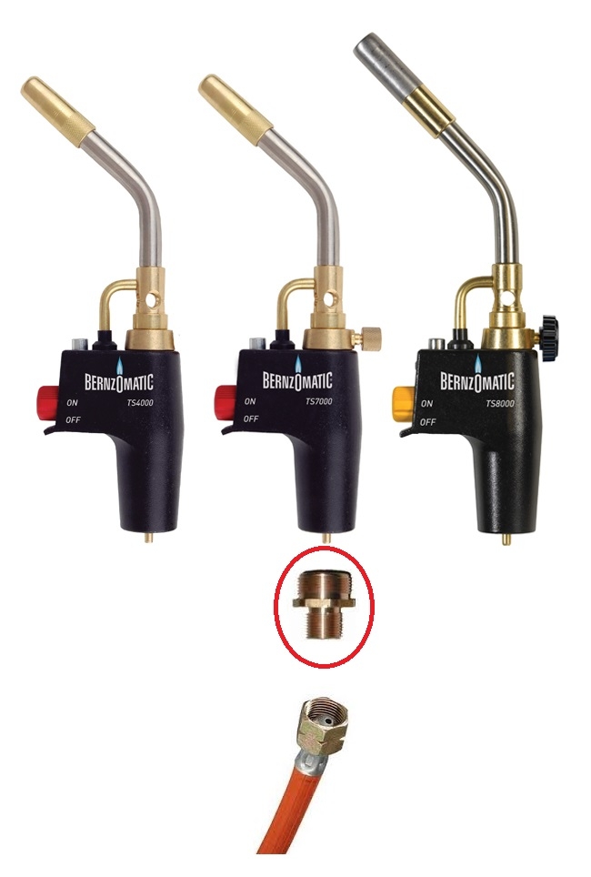 Adaptér k pripojeniu amerických plynových zariadení a horákov Bernzomatic TS 8000, TS 7000, TS757, TS 4000, TS 3000, BZ4500HS, JT539T, JTH7, JT680, UL2317, Super Fire (Rothenberger) k plynovej hadici s koncovkou G 3/8" LH. Materiál mosadz. Na vidlicový kľúč 30mm. Gumové tesnenie je súčasťou balenia.