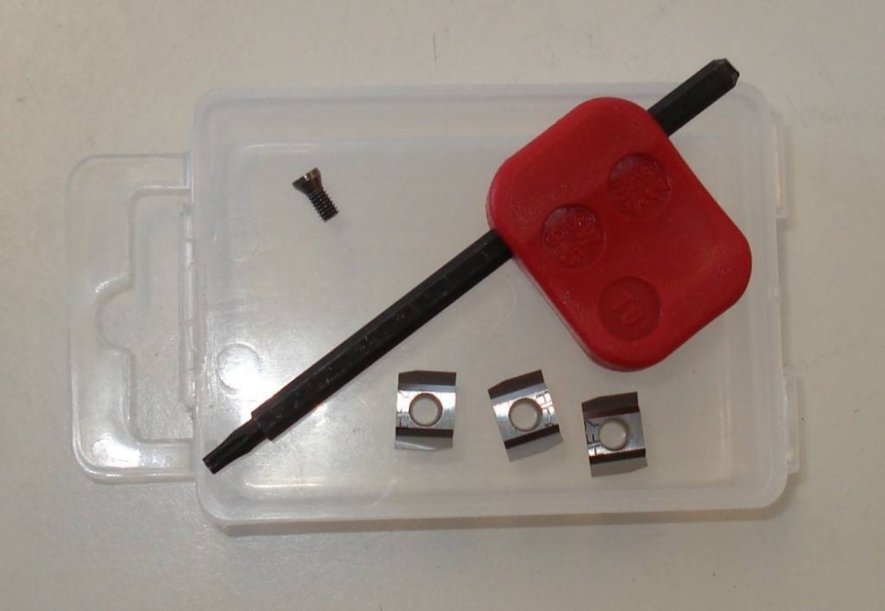 3 náhradné nože s kľúčom a skrutkou v plastovej krabičke. Každá čepeľ má 2 hrany. Pre orbitálne škrabky série SCR