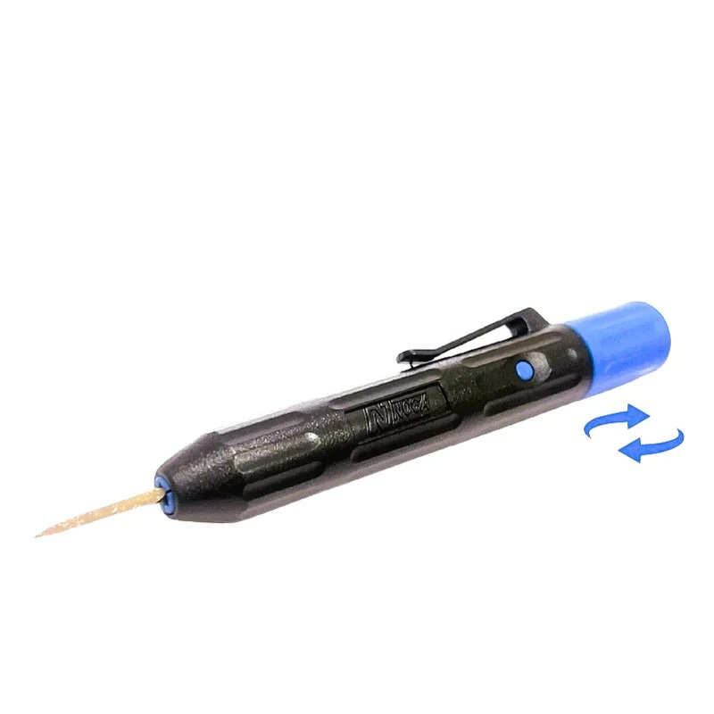 Profesionálny škrabák Noga s novou rukoväťou a obojstrannou trojhrannou čepeľou. Nová rukoväť umožňuje pripojiť trojhranné čepele BT8001 a BD5010. Nástroj je určený na škrabanie, odstraňovanie ostrých hrán a odstraňovanie otrepov z väčšiny materiálov.