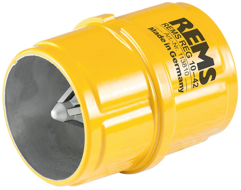 Odhrotovač na vnútorné a vonkajšie odhrotovanie trubiek na ručný alebo elektrický pohon. Na nerezové oceľové trubky, ostatné oceľové trubky, medenné, mosadzné, hliníkové a plastové trubky, Ø 10 – 42 mm, Ø ½ – 1⅝”. Bez unášača pre elektrický pohon. V blistri.