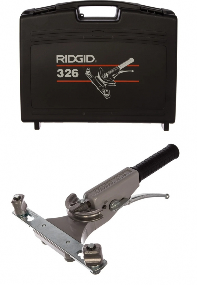 Profesionálna hrebeňová ohýbačka Ridgid model 326 s ohýbacími segmentmi pre meď 10, 12, 14, 15, 16, 18, 22 mm. Určená na ohýbanie rúrok do 90˚ z mäkkých a potiahnutých Cu rúrok s priemerom 10 mm až 22 mm, ako aj viacvrstvových rúrok Al-Pex typu Mepla do priemeru 32 mm. Račňový mechanizmus zaisťuje presné, ľahké a rýchle ohýbanie a otváranie. Pohodlná ergonomická rukoväť. V pevnom plastovom kufríku s príslušenstvom. Hmotnosť 3,85 kg.