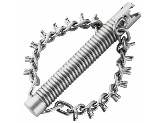 Pre potrubia 100-150mm, dĺžka nástroja 170mm. Pre všetky sekčné (spojovacie) špirály 22mm. Popis. Ideálny pre inštalatérov, upratovacie služby a čističov potrubí pre záverečné čistenie po odstránení upchávky odpadného potrubia. Intenzívne čistenie. Vhodné najmä na betónové a liatinové rúry. Znižuje možnosť vzniku nových upchatí. Ideálne sa hodí na zvody a zvislé potrubia. Bez krúžku: lepšia flexibilita a prichod oblúkmi. Rozsah použitia: Na konečné čistenie po odstránení upchatia v odpadových rúrach so špirálou 22 mm. Technické údaje: Pracovný rozsah od priemeru 100 do 150 mm. Hmotnosť 0,86 kg.