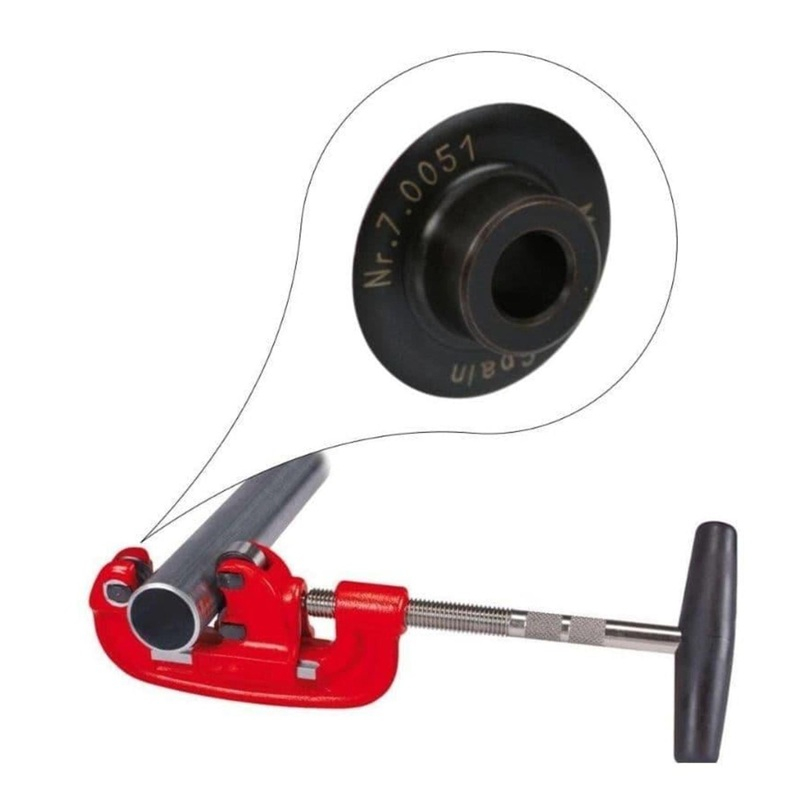 Rothenberger SUPER 2˝ odrezávač hrubostenných oceľových trubiek 1/8-2˝ (10-60mm). Vďaka širokým vodiacim valčekom bezpečné vedenie rezného kolieska. Jednoduchá regulácia prítlaku vďaka veľkej rukoväti. Náhradné rezné kolieska pre oceľ 70051D. Hmotnosť 2,1 kg. V kartóne.
