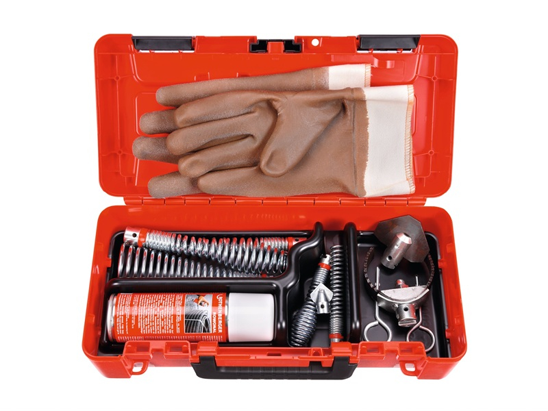 Rothenberger Sada špirál a nástrojov Standard pr. 16/22 mm obsahuje: Kôš na špirály 16 mm. 5 ks štandardné špirály 16 mm/2,3 m. Priamy vrták 16 mm. Kužeľový vrták 16/28 mm. Plochý vrták 16/25 mm. Kľúč na rozpojenie 16 mm. Kôš na špirály 22 mm. 5 ks štandardné špirály 22 mm. Priamy vrták 22 mm. Kužeľový vrták 22 mm. Lievikový vrták 22 mm. Lopatkový vrták 22/65 mm. Vidlicová rezná hlava 22/75 mm. Kľúč na rozpojenie 22/32 mm. Spej na špirály Rowonal. Pár gumových rukavíc. Rocase kufrík na nástroje. Hmotnosť 33kg. V kartóne.